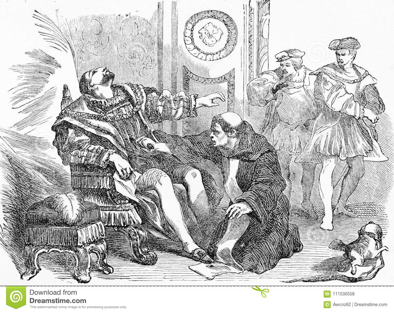 Amaneció el 1.° de Agosto, día de San Pedro Advincula, (Jacobo Clement) celebró el santo sacrificio y fue a ver al rey, que hubo de llamarle al dejar el lecho, cuando aún no estaba vestido. Trabadas algunas razones por entrambas partes, y habiéndose Jacobo allegado al rey a golpe de mano, simula acción de ir a entregalle otras cartas, y ábrele súbito honda herida en el vientre con un puñal enherbolado que llevaba en la misma mano encubierto. ¡Valor insigne! ¡Hazaña memorable! Traspasado de dolor el rey, hiere con el mismo puñal el pecho y un ojo de su agresor, clamando al mismo tiempo: ¡Al traidor! ¡Al Parricida! En esto entran los palaciegos, conmovidos por tan inesperado suceso, y se encarnizan con crueldad y fiereza en multiplicar las heridas del ya postrado y cuasi exánime Jacobo, el cual, sin proferir una palabra, mostraba, empero, en su faz lo alegre y satisfecho que estaba de haber llevado a cabo su intento de evitar penas, para las cuales acaso flacas hubieran sido sus fuerzas, y dejar a la postre redimida con su propia sangre la libertad de la patria y del pueblo.